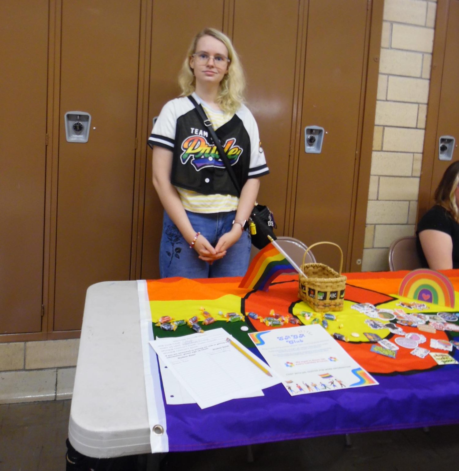 Cami Wolkow at the Science Olympiad table at the Club Crawl